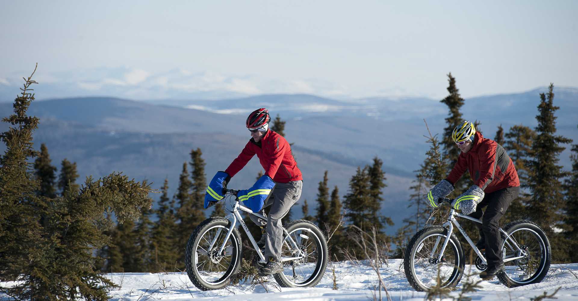 Fairbanks is a great place to ride a bike. In town, the terrain is relatively flat and there are plenty of trails. In fact, a new business called Fairbikes recently started up that allows people to pick up and ride bikes to common areas around town and drop them off for a fee. Other local businesses rent all kinds of bikes for trail and road riding. Popular mountain bike areas include Birch Hill Recreation Area and the University of Alaska Fairbanks trails. Both areas are primarily ski trails but many bikers and hikers utilize them too. Although most locals put away their bikes when the snow falls, Fairbanks fat tire bikers ride year round for both transportation and fun.