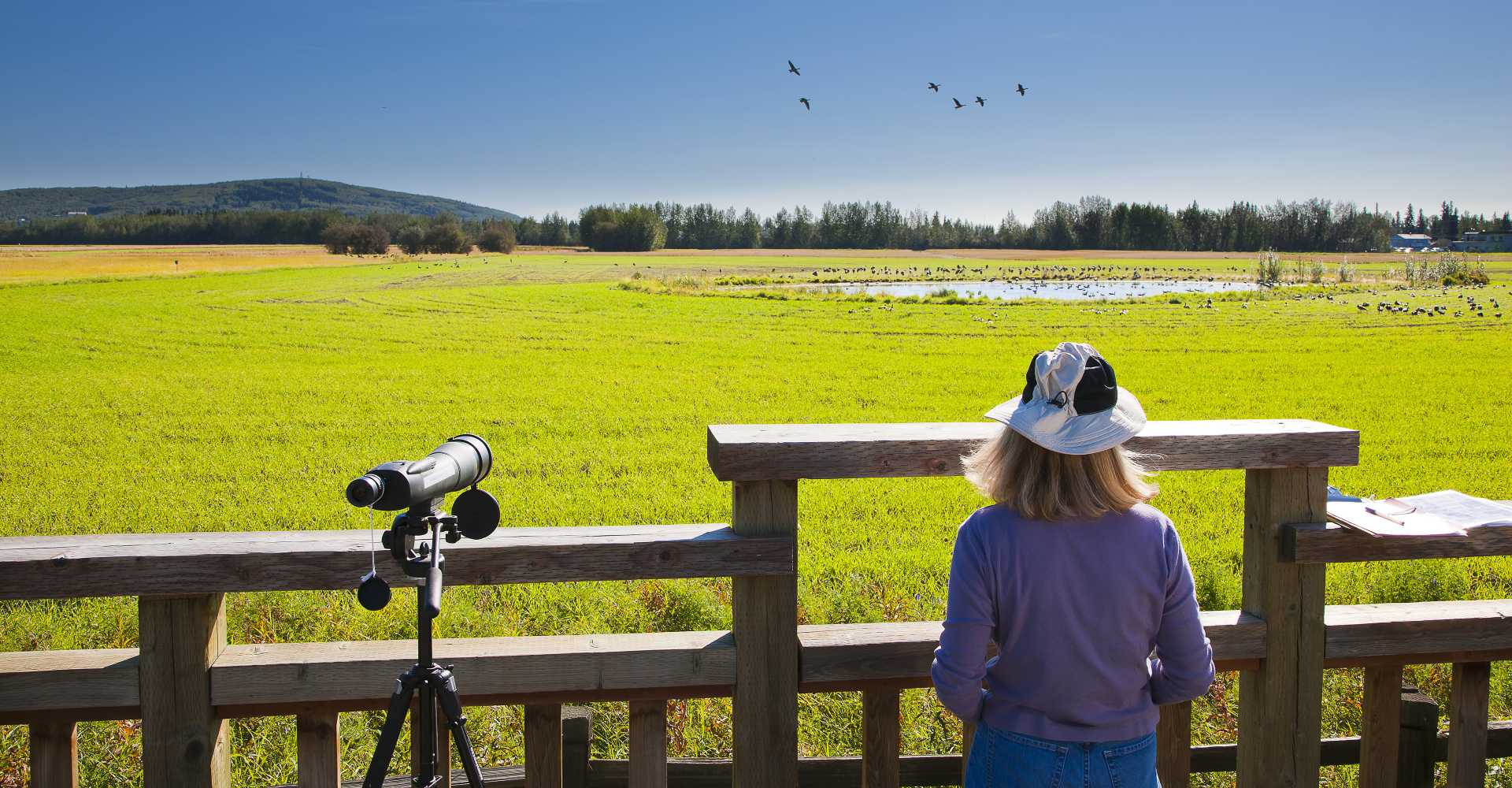 Creamer's Field Migratory Waterfowl Refuge is a delightful place to walk and birdwatch year-round, with multiple trails, a boardwalk and bird viewing stations crisscrossing big fields and forests filled with birch, aspen and spruce trees. A local favorite, Creamer’s Field offers multiple programs on birds, with the most renowned being the Tanana Valley Sandhill Crane Festival held annually at the end of August. Creamer's Field includes approximately 2,200 acres, including 150 acres that are within the city of Fairbanks. The fields, woods, and wetlands are managed by the Alaska Department of Fish and Game. The farmhouse and barns are listed in the National Park Service’s National Register of Historic Places.