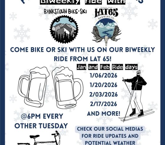 Dates vary between January 6, 2026 - April 21, 2026Join us every other Tuesday for a bike or ski down the Chena River and Noyes Slough from Lat 65! These rides will be an out and back so you are welcome turn around at... -